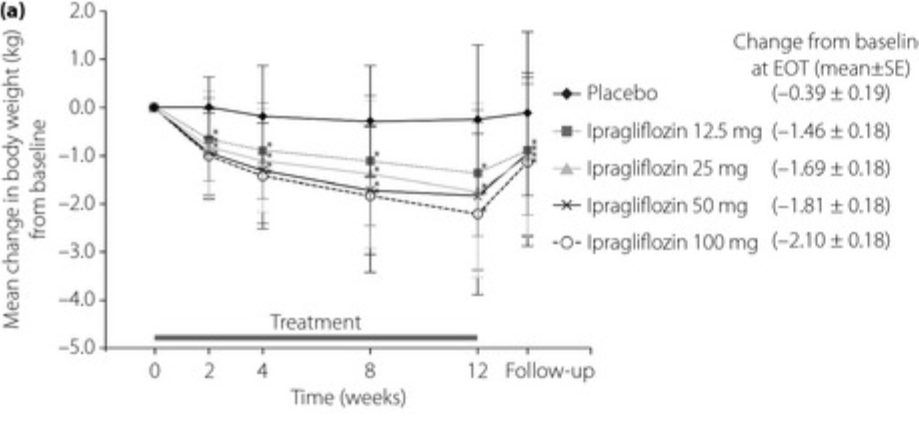 国内の臨床試験では、スーグラ錠を12週間服用した糖尿病患者において、平均で2〜3kgの体重減少が確認されています。